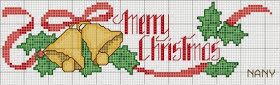 Gráfico de Mery Chistmas e sinos de natal em ponto cruz